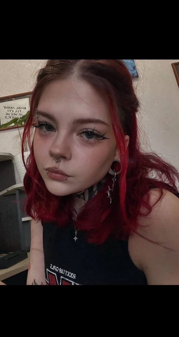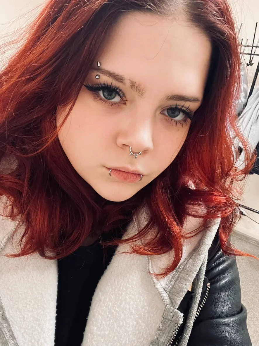 Red hair, some piercings, a few tattoos… little bit alt, little bit chaos.