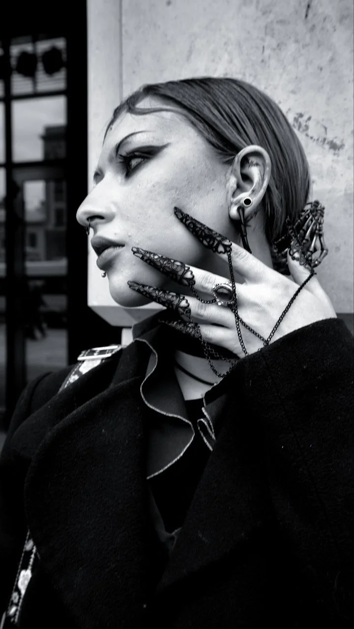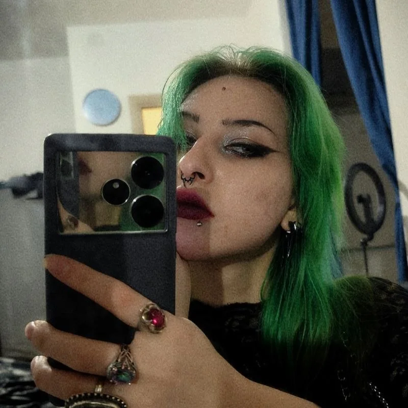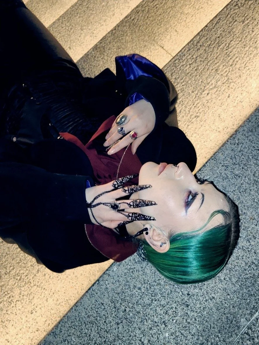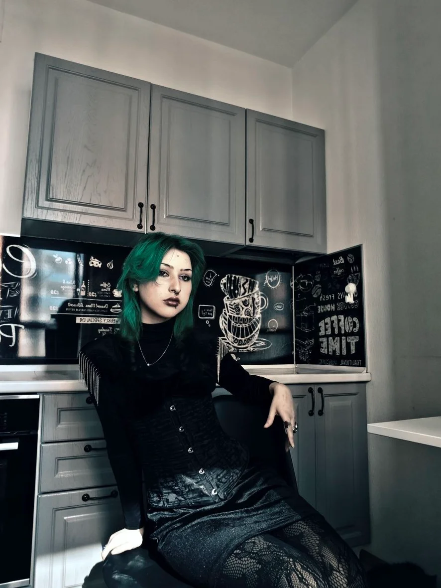🖤 My wardrobe is 90% black — but I love mixing oversized hoodies, fishnets, chokers, mini skirts, and ripped jeans. Every stream is a different vibe: sometimes cute and kawaii, sometimes dark and punky.